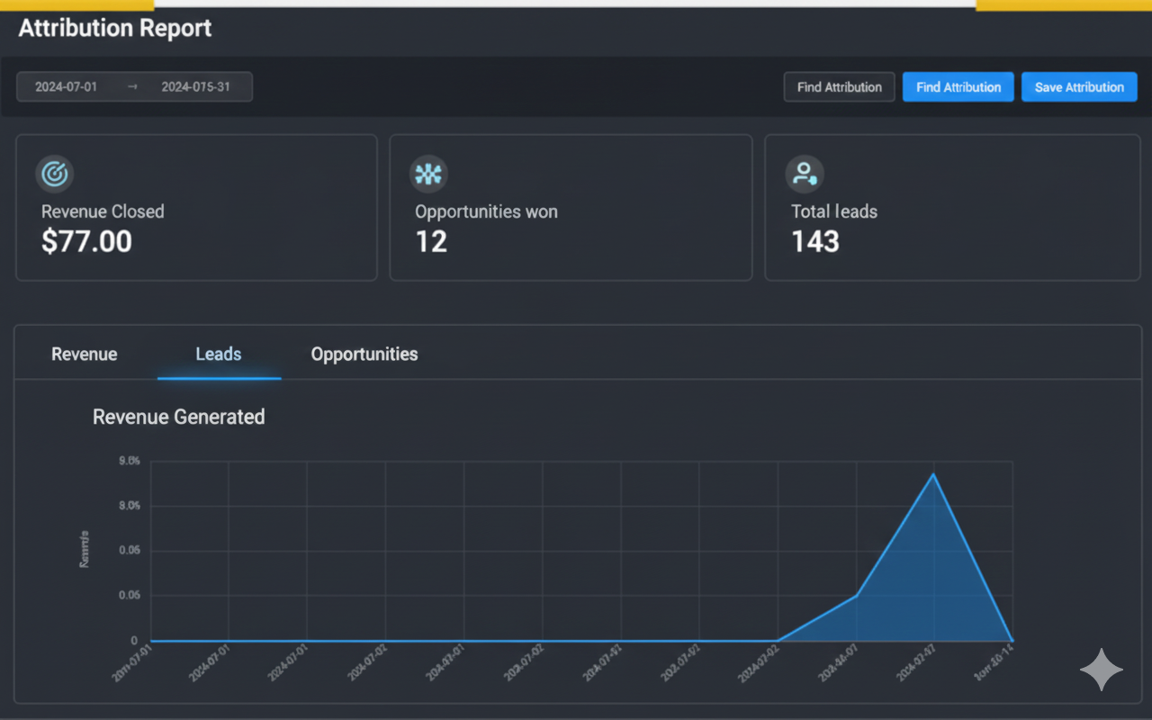 The Attribution Report helps you understand the customer journey by attributing leads, opportunities, and revenue to specific marketing efforts. This report gives you a clear view of which channels and campaigns are contributing most to your business growth.